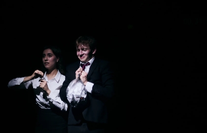 Наш спектакль — это kompott: научная конференция, которая превращается в лабиринт снов, погружает в бездну бессознательного на фоне истории странной любви и спасения.